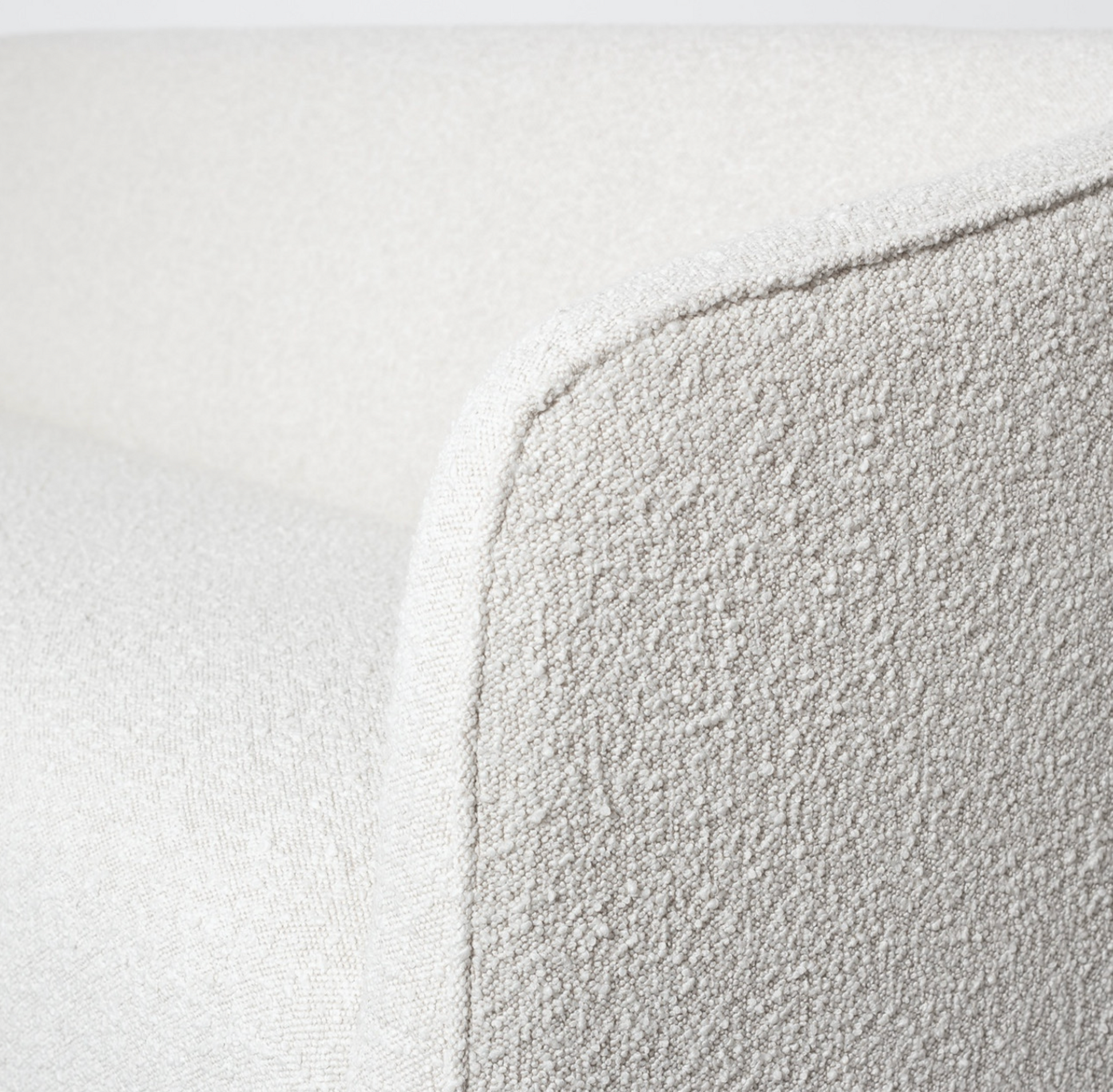 Our Evita sofa adds cozy style and sophisticated comfort to any space. Its sculptural curves are upholstered in our fabulous boucle performance fabric making it a great choice for spaces with a lot of traffic, pets or parties. Oh so on trend and, this sofa gives any room a chic update that's sure to make people turn their heads.