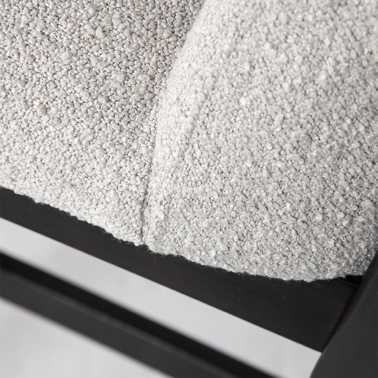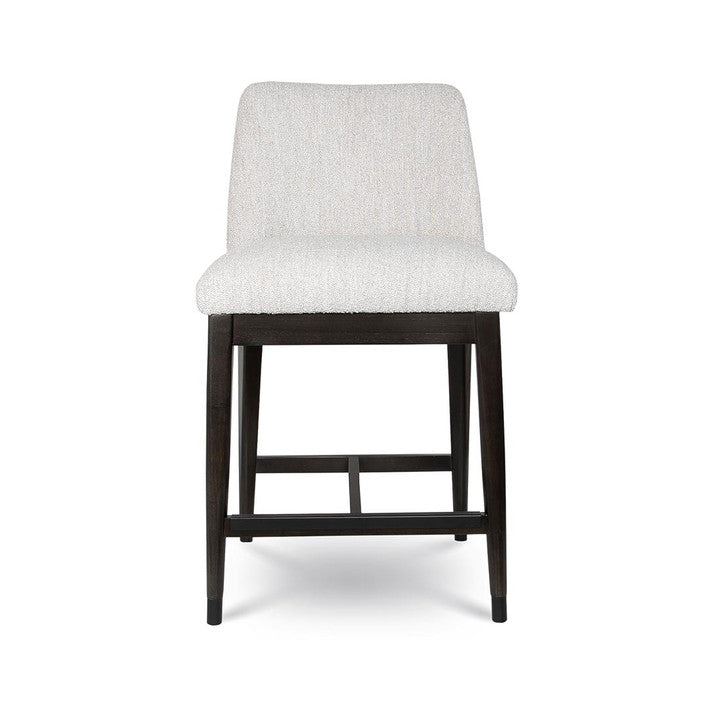 Our Fawcett Dining Counter Stool, is a contemporary piece that marries mid-century modern inspiration with today's design direction. Designed to complement kitchen islands and bar setups, this counter-height stool stands on elegant, dark wooden legs. With a generously padded seat and back, Fawcett is upholstered in an amazing taupe boucle fabric for enduring style and comfort. It's the perfect choice for those seeking to create a welcoming and cozy seating area in any modern kitchen or dining space.