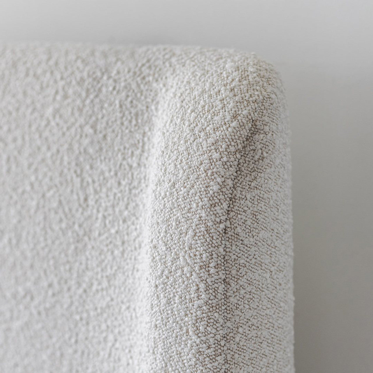 Upholstered in a show-stopping off-white boucle fabric, you will fall in love with the way Faye looks in your space. Functional and beautiful, the gently curved headboard adds subtle on-trend style and elevated design.