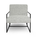Whether you're outfitting a cozy condo, a snug townhome, or just want to make the most of a petite room, this chair has got you covered, blending style and practicality. This accent chair isn't just a seat, it's a statement. Upholstered in our trendy Stone Performance Fabric, it brings a touch of elegance and a modern vibe to any space. The design? A perfect mix of mid-century modern and contemporary, with a sleek silhouette that's sure to turn heads. The black-metal angular frame adds just the right amount of drama against the plush, textured cushions.