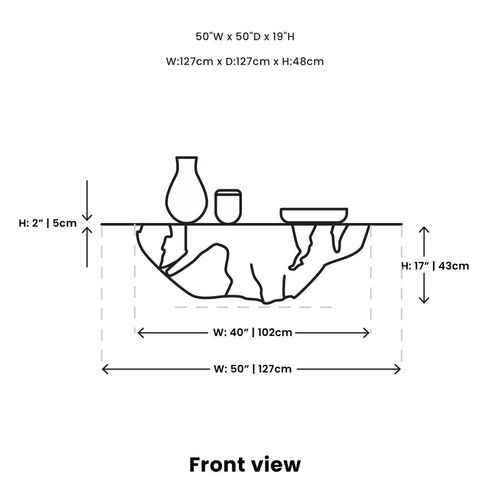 Product Dimensions: Base: 40"W x 40"D x 17"H Top: 50"W x 50"D x 2"H