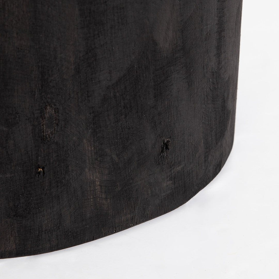 Handmade from sustainable solid paulownia wood, and stained in a rich, dramatic black matte satin stain, these stumps coordinate with any decor. Place them next to a sofa, beside an accent chair or in a bedroom as side tables or accents stools